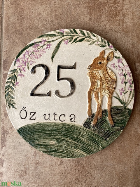 Kerek házszámtábla őzikével