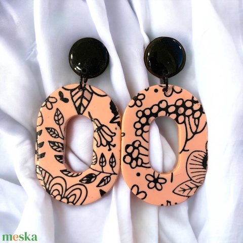 217. Rózsaszín alapon fekete virágmintás fülbevaló