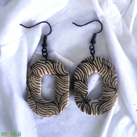 132. Szürke alapon fekete hullámmintás ovális alakú fülbevaló