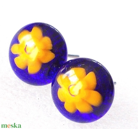 ORVOSI FÉM! Boglárka kékben üveg fülbevaló, ajándék névnapra, születésnapra.