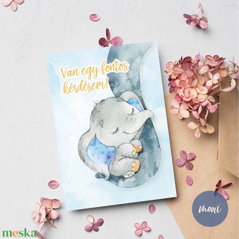 Kreatív keresztszülő felkérő, kaparós sorsjegy kártya A6 méretben - KÉK