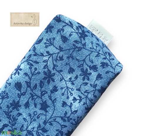 Kék virág mintás pamut zsebkendő tartó - Artiroka design