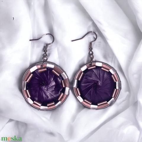 40. Lila és pezsgő mintás Nespresso kapszulából készült kerek fülbevaló