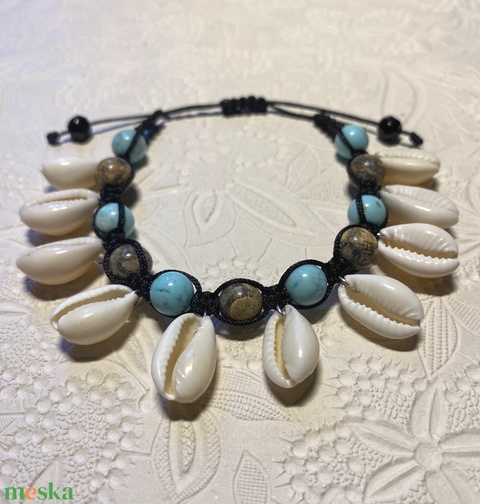 - Anyag/Összetevő selyemzsinór, leopárd jáspis, türkiz, kagyló