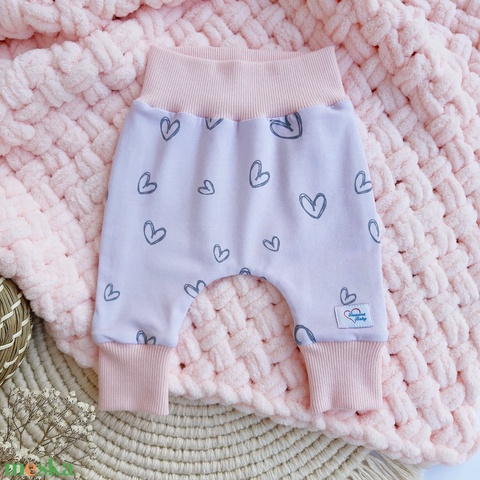 Babalátogató ajándék, pasztell rózsaszín babatakaró, rajzolt szívek mintás babanadrággal