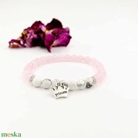 Princess medálos rózsakvarc karkötő