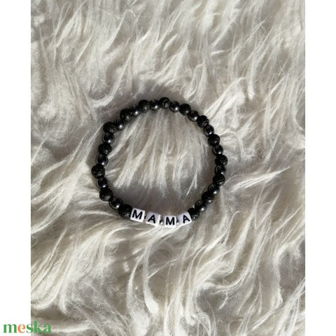 MAMA feliratos hematit-lávakő ásványkarkötő