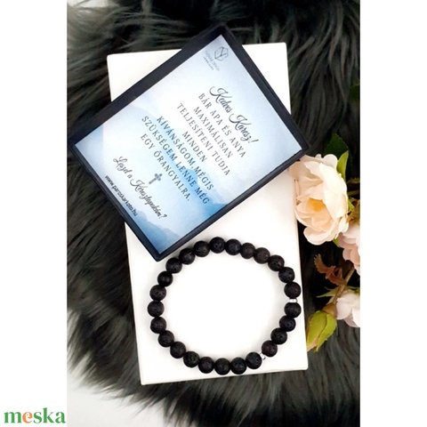 Keresztapa felkérő díszdobozos lávakő ásványkarkötő