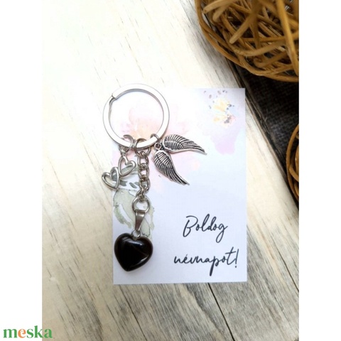 Tigrisszem szív kulcstartó Boldog névnapot! feliratos kártyával