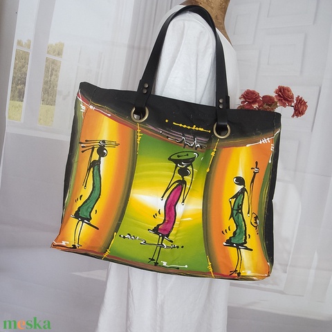 Festmény táska, Női Afrika táska, Akril festmény táska, Nagy pakolós táska, A hordható művészet