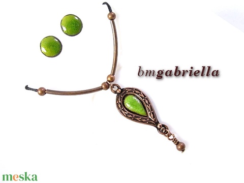 Ékszerszett - tűzzománc betétes nyaklánc és pontfülbevaló - egyedi tervezésű kézműves ékszer