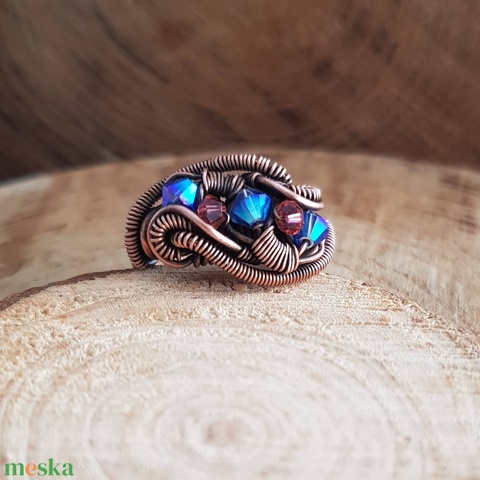 Swarovski gyöngyös rézdrót gyűrű