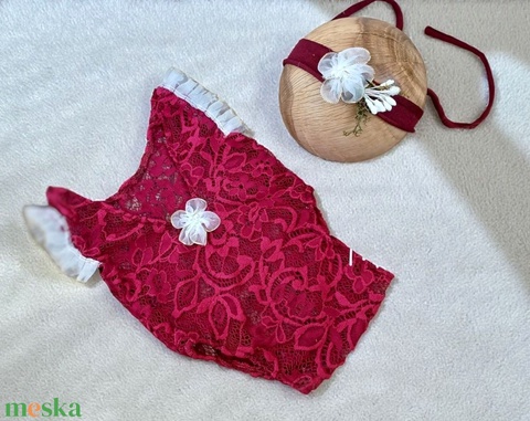 Csipke body és fejpánt szett Újszülött fotózáshoz