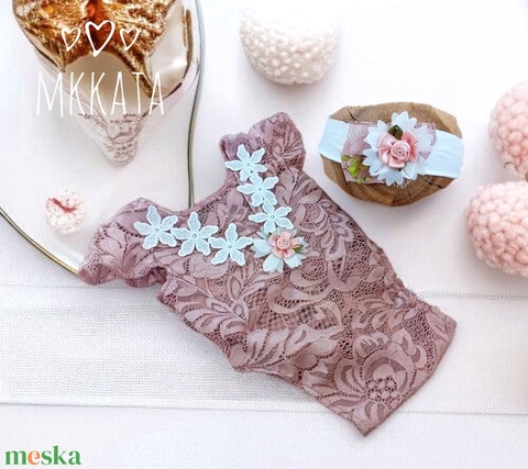 Csipke body és fejpánt szett Újszülött fotózáshoz
