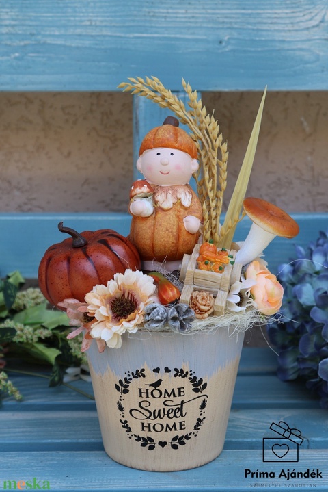 - Anyaga: fém dekor alap, selyemvirág, kerámia figura