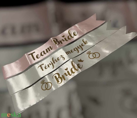 Lánybúcsús szatén szalagok, menyasszonynak, koszorúslányoknak választható felirattal