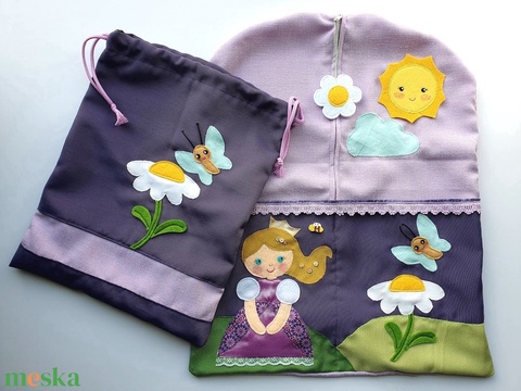 Ovizsák és tornazsák szett mosolygós királylánnyal és pillangóval - Azonnal vihető!