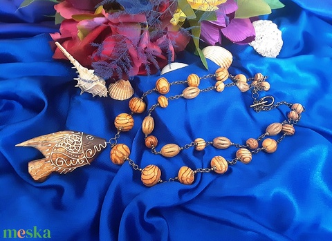 Medálos nyaklánc fa gyöngyökkel