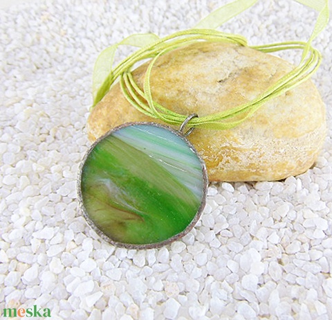 Üveg medál csatos, színes zsinórral - M0001.23