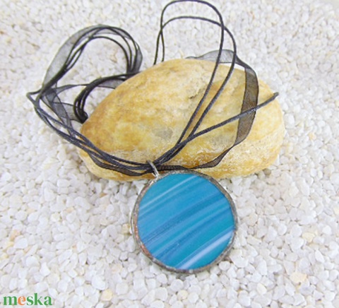 Üveg medál csatos, színes zsinórral - M0003.23