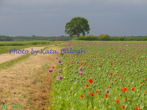Bőségfa nyuszival mákmezőn, ajándék - vászonkép (tájkép)
