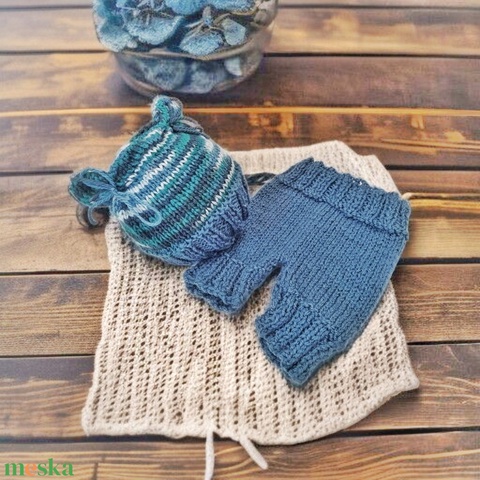 Kötött baba sapka és nadrág szett újszülött fotózásra