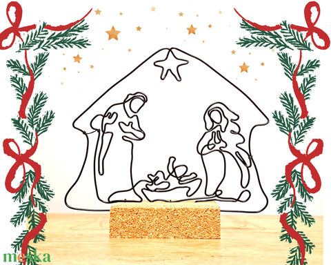Karácsonyi Betlehem drótból - A Szent család - József, Mária és a kis Jézus - vallásos ajándék és dekoráció karácsonyra
