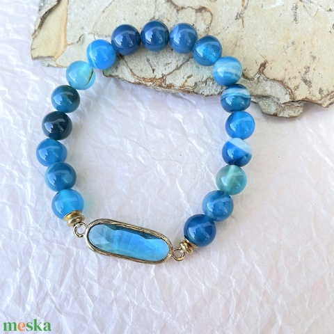 Kék kristály - csíkos achát ásvány karkötő
