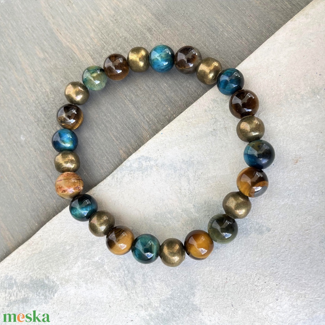 gumis damil, sárga tigrisszem, kék tigrisszem, réz gyöngyök