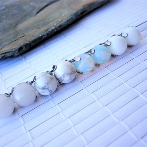 - Anyaga: gumis damil, sárga tigrisszem, kék tigrisszem, réz gyöngyök