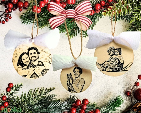 Kis méretű egyedi karácsonyfadíszek saját fotóval - Fényképes karácsonyi díszek fából - Egyedi fotós ajándék fényképpel
