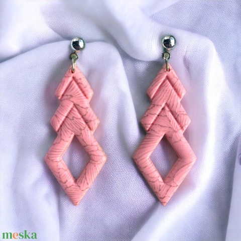 106. Rózsaszín, anyagában mintás különleges alakú bedugós fülbevaló