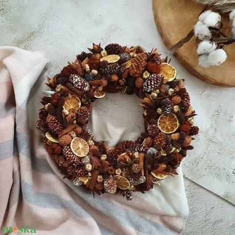 Lime and shine karácsonyi kopogtató, koszorú, advneti koszorú, szárazvirágból, termésekből