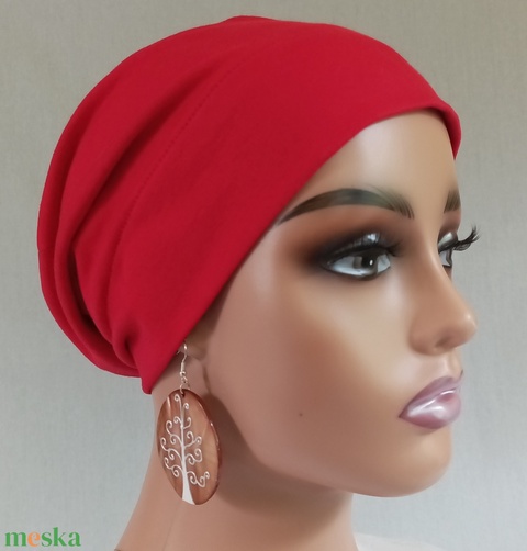 Kemoterápiás sapka - piros - paróka helyett - daganatos kezelések idejére