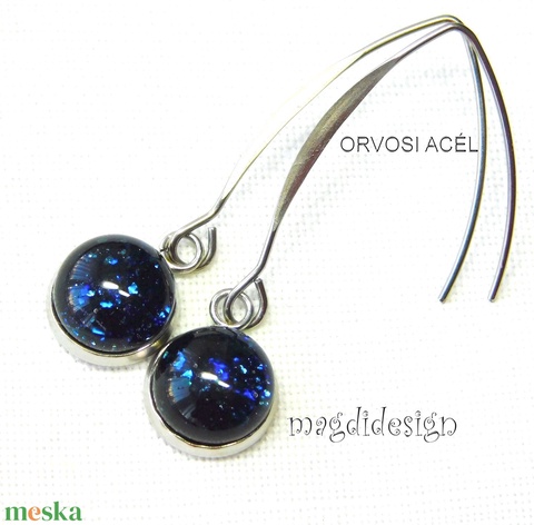 Kék aventurin üvegékszer lógós fülbevaló, orvosi acél