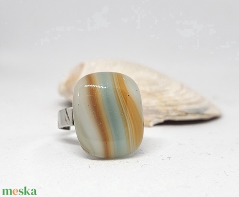 Fehér alapon narancsos, kékes mintás üveg gyűrű