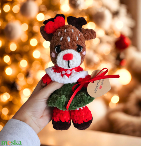 Horgolt karácsonyi rénszarvas plüss téli ruhában