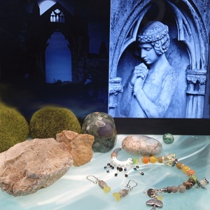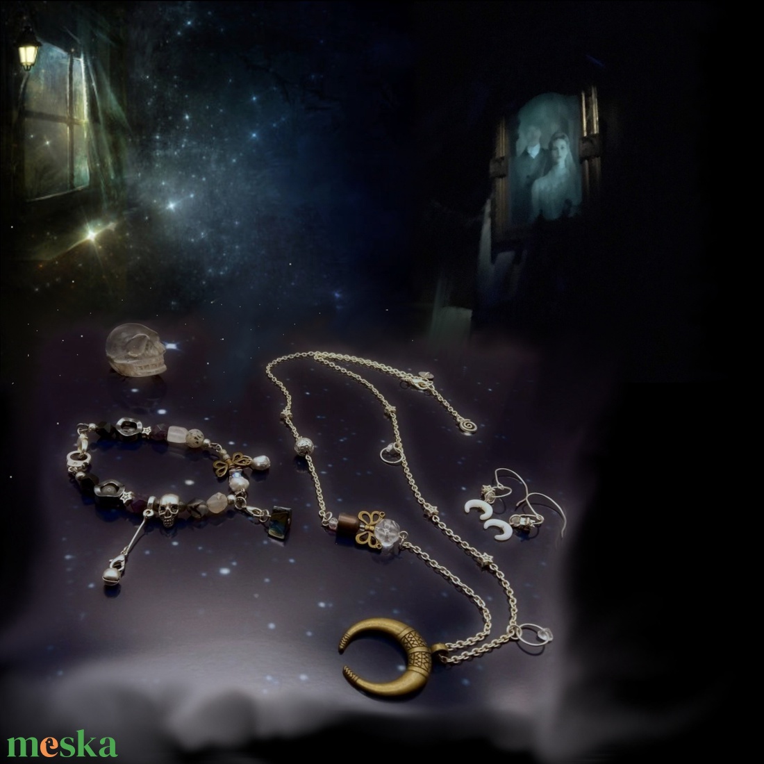 - Anyaga: lodolit kristálykoponya, drágakő, féldrágakő, ásvány, igazgyöngy, kagylóhéj, üveg, hegyikristály gyöngykoponya, fém ékszerkészítési kellékek