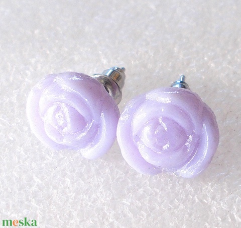 NEMESACÉL! Lila minirózsa üveg stiftes fülbevaló, ajándék ballagásra, névnapra, születésnapra.