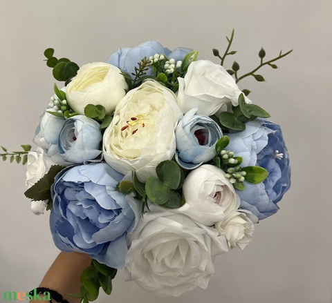 Téli csoda menyasszonyi örökcsokor - fehér és kék rózsa