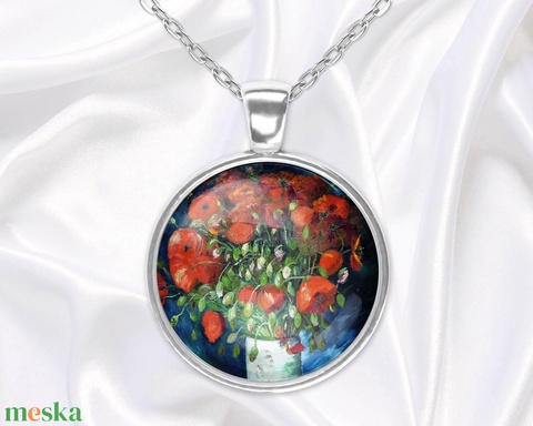 Üveglencsés medál Van Gogh pipacsos csendéletével
