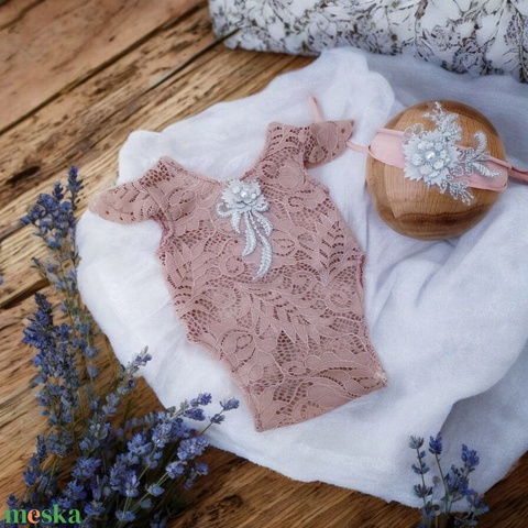 Csipke body és fejpánt szett Újszülött fotózáshoz