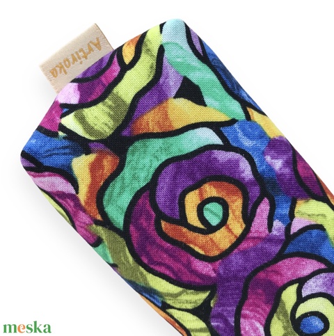 Prémium pamut, színes rózsa mintás papírzsebkendő tartó - Artiroka design