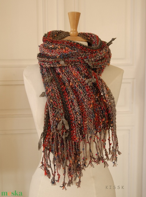 Különleges fonalakból kézzel kötött, noppos, meleg sál