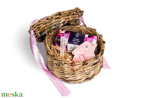 Mini ajándékcsomag, fonott dobozkában, levendula-ylang-ylang