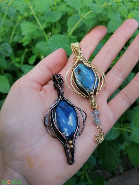 Labradorit nyaklánc . Réz foglalatú kristály medál