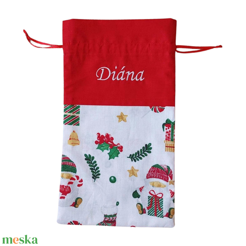Az ünnepi minták melegséget és vidámságot sugároznak, tökéletesen illenek az ünnepi hangulathoz. A zsák különlegessége, hogy akár névre szólóan hímezzük, így személyre szabott ajándékot adhatsz szeretteidnek - akár gyerekeknek, akár felnőtteknek.