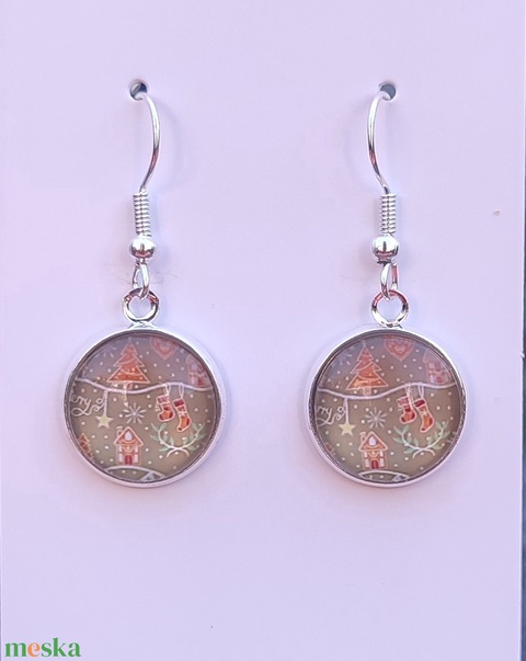 Karácsonyi üveglencsés fülbevaló 14 mm