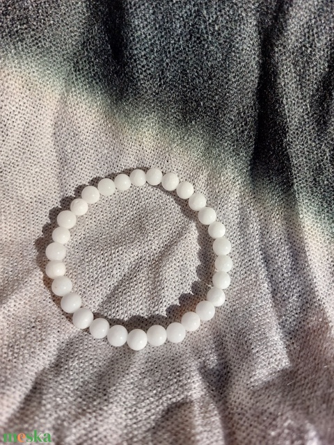 Tejkvarc ásványgyöngy karkötő gumisdamilra fűzve.