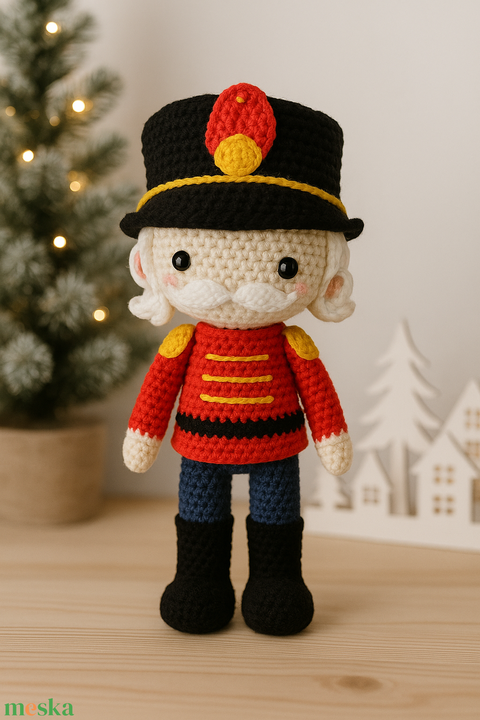 Horgolt diótörő baba - Kézzel készült karácsonyi dekoráció